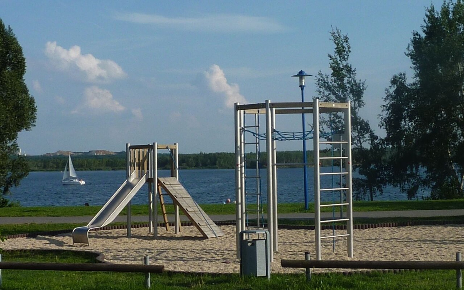 Dětské hřiště u parkoviště obytných vozů Buchwalde, Foto: Zweckverband Lausitzer Seenland Brandenburg, Lizenz: Zweckverband Lausitzer Seenland Brandenburg