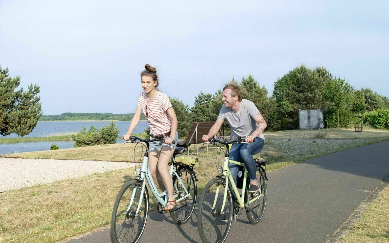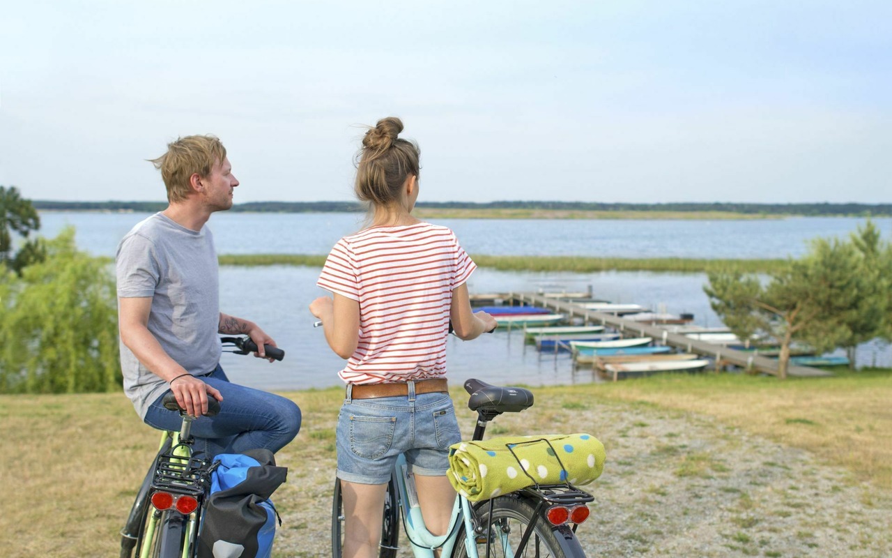 Radfahrer betrachten den Gräbendorfer See, Foto: Nada Quenzel