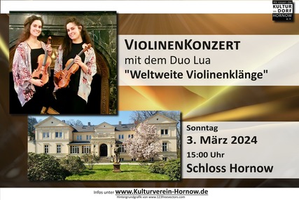 Das Violinenen - Duo Lua, bestehend aus den Schwestern Aida und Lucía López Borrego aus Sevilla (Spanien), wird sie unter dem Motto "Weltweite Violinenklänge" mit Stücken aus aller Herren Länder, u.a. von J. Herrando, C. Beriot oder J. Kalliwoda, verzaubern. Gänsehaut garantiert!