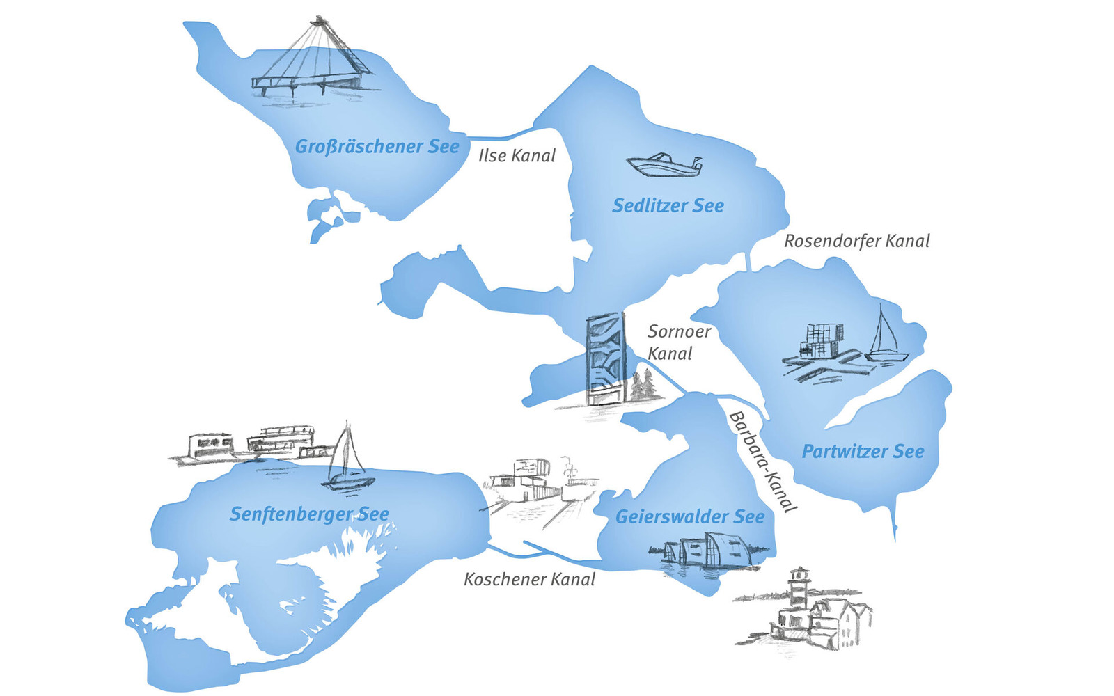 5 Seen - 1 Verbund mit Icons, Foto: Zweckverband Lausitzer Seenland Brandenburg