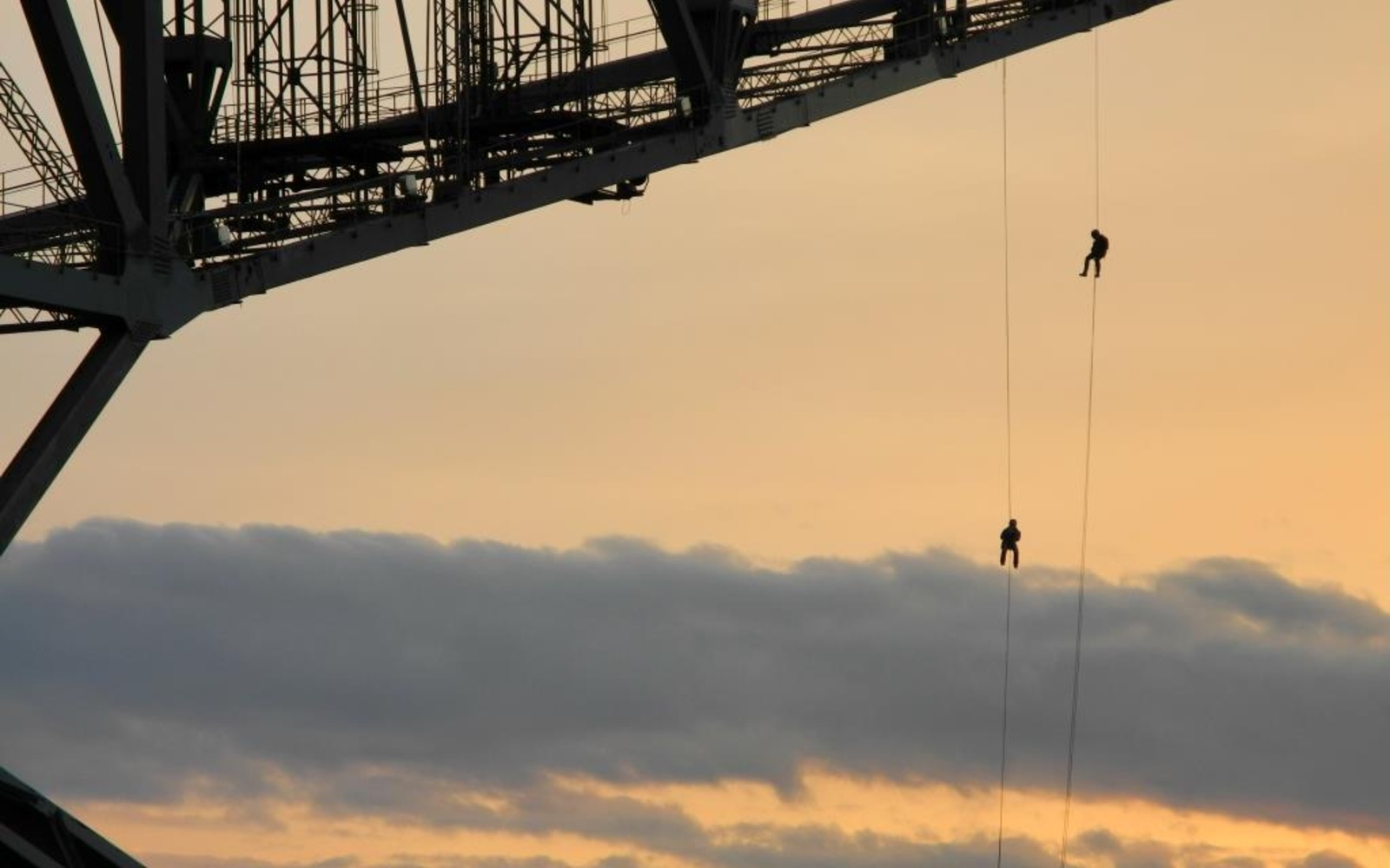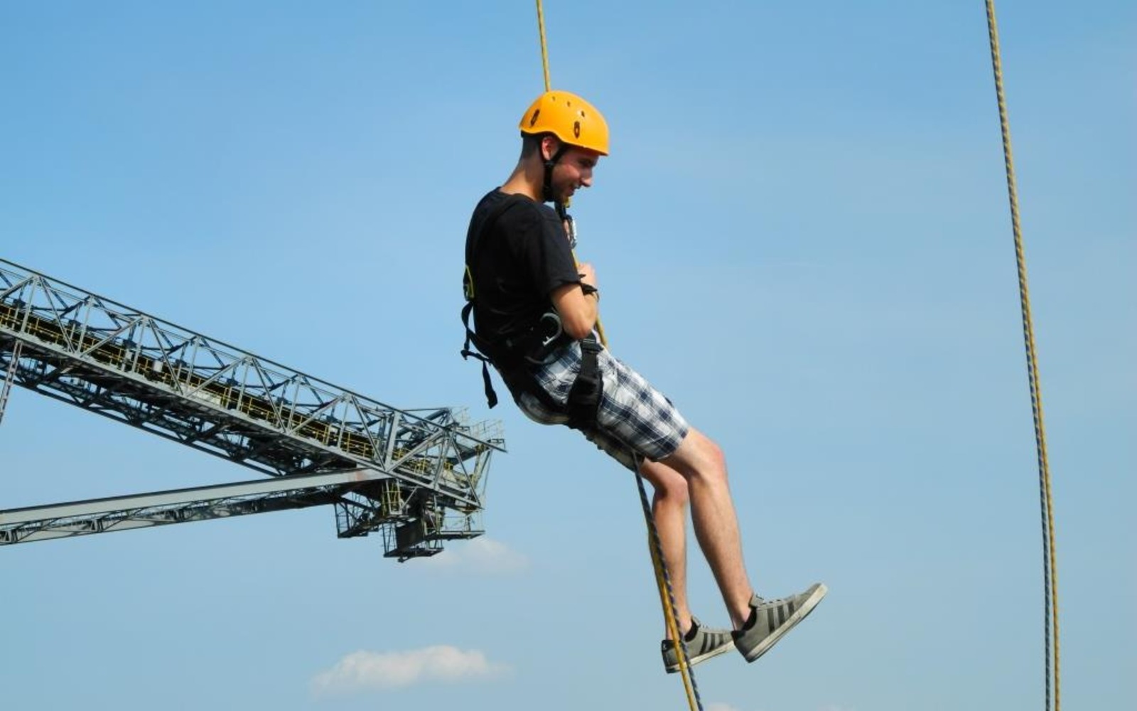 Der gigantische Stahlkoloss ist auch Kulisse für eine Mutprobe in luftiger Höhe: Gäste seilen sich von der Förderbrücke in die Tiefe ab. Der Anbieter „Prima-Abenteuer“ führt Besucher zunächst mit dem Fahrstuhl auf eine Plattform in 60 Metern Höhe. Hier wird ein Gurt angelegt und die Technik erklärt. Anschließend seilt sich jeder selbständig senkrecht ab. Das ermöglicht ganz neue Perspektiven auf die F60 und den Bergheider See.
