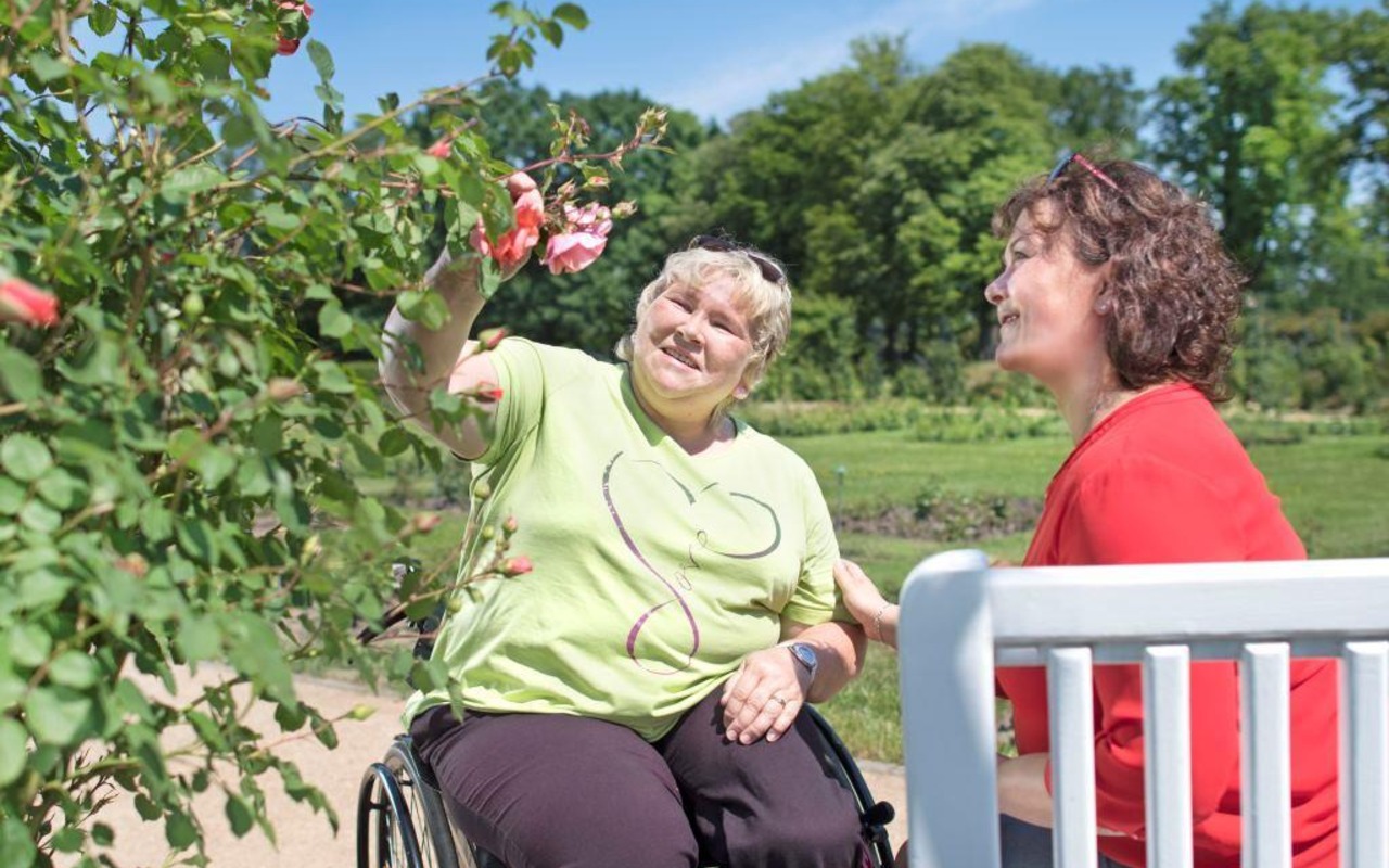 Foto Rollstuhlfahrerin im Ostdeutschen Rosengarten Forst (Lausitz)Bildnachweis: Tourismusverband Lausitzer Seenland / Nada Quenzel (JPG; 1,94 MB)