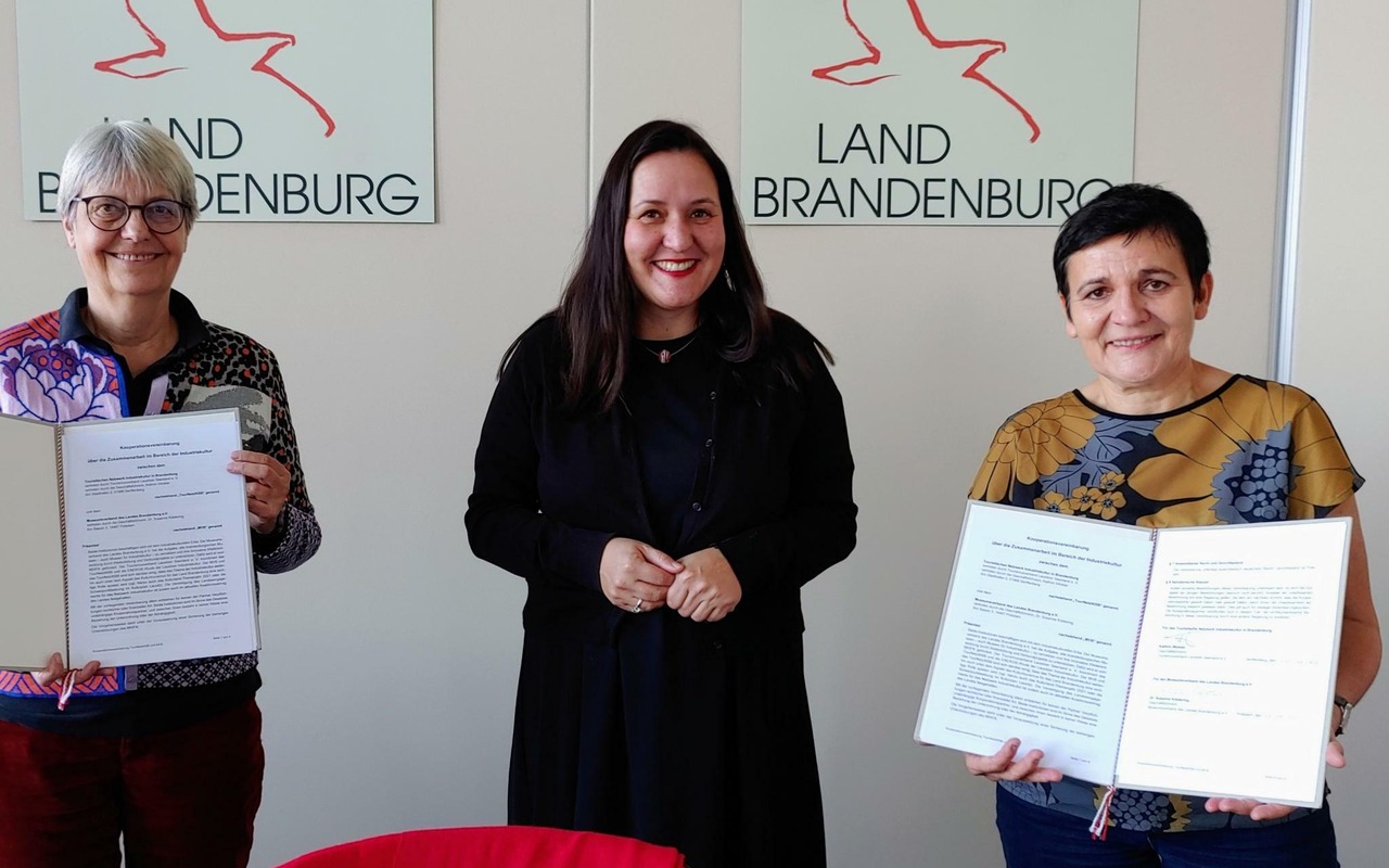 Ein Foto der Kooperationsunterzeichnung am 20.10.2022 in Potsdam erhalten Sie frei zur Veröffentlichung in Zusammenhang mit dieser Meldung. Der Bildnachweis "© MWFK" ist bei Veröffentlichung anzugeben.