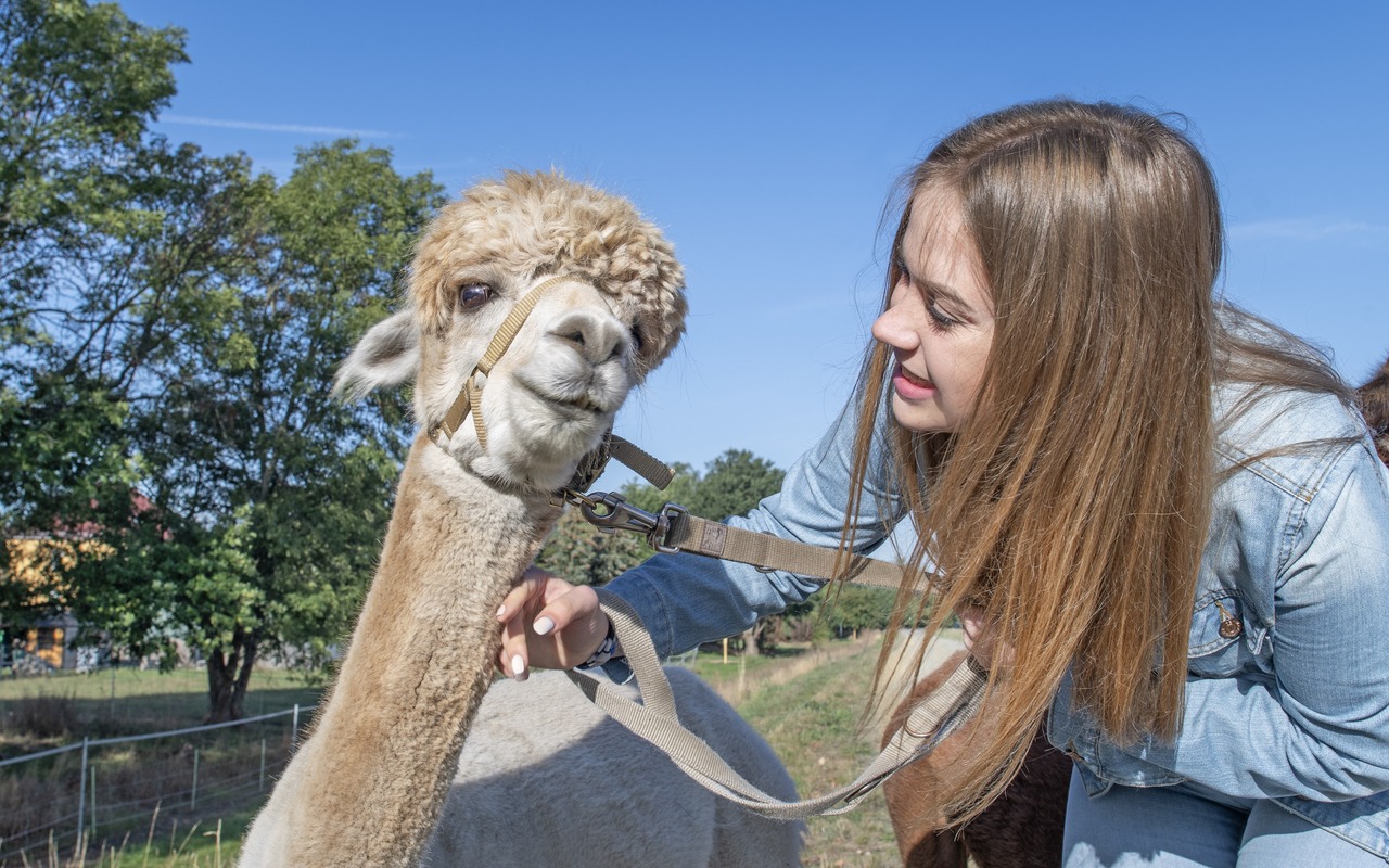 Auch mit Lamas und Alpakas können Familien im Lausitzer Seenland zu Rundgängen aufbrechen. Die aus den südamerikanischen Anden stammenden Tiere sorgen durch ihre ruhige und gelassene Art für Entschleunigung und Entspannung. Christine Berthold von Weggefährten bietet anderthalbstündige Touren für Familien mit Kindern zwischen sechs und zwölf Jahren ab Senftenberg und Neupetershain an. Dabei lernen sie die sanften Wesen intensiv kennen und können sie am Ende der Wanderung auch füttern.