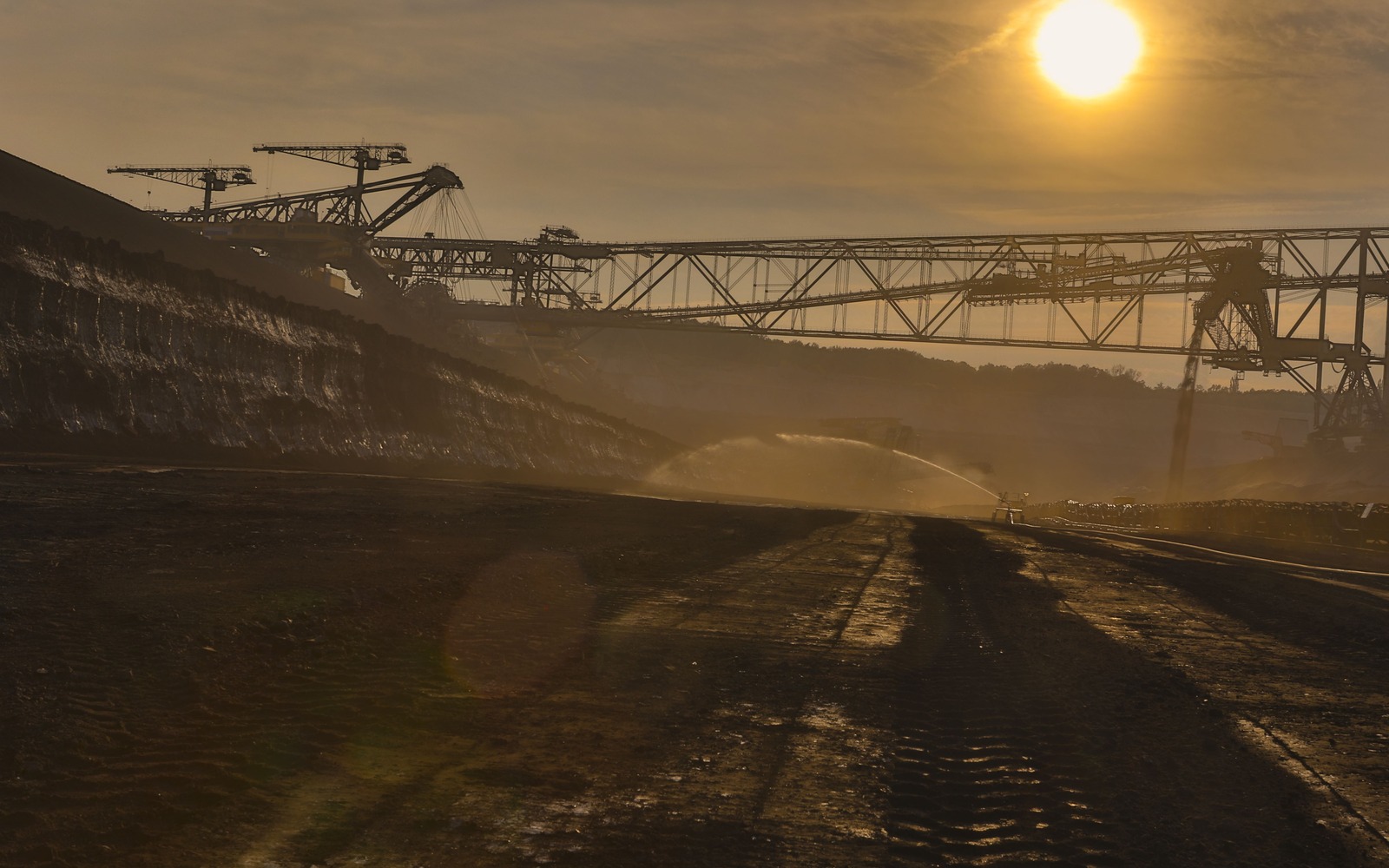 Welzow: Sonnenuntergang im aktiven Tagebau