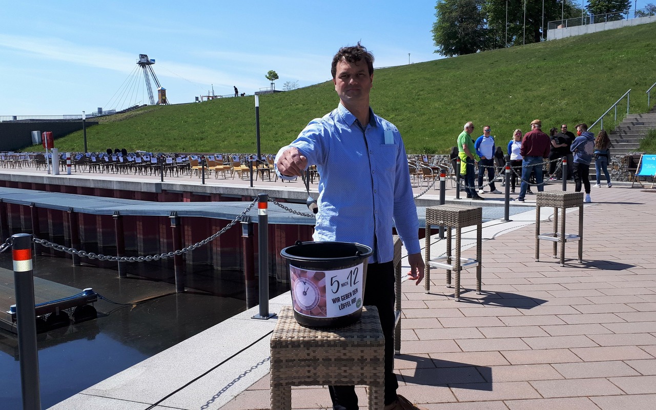 Foto Initiator und Gastwirt Sebastian Wolschke gibt demonstrativ den Löffel abc) Tourismusverband Lausitzer Seenland e.V. (JPG; 2,72 MB)