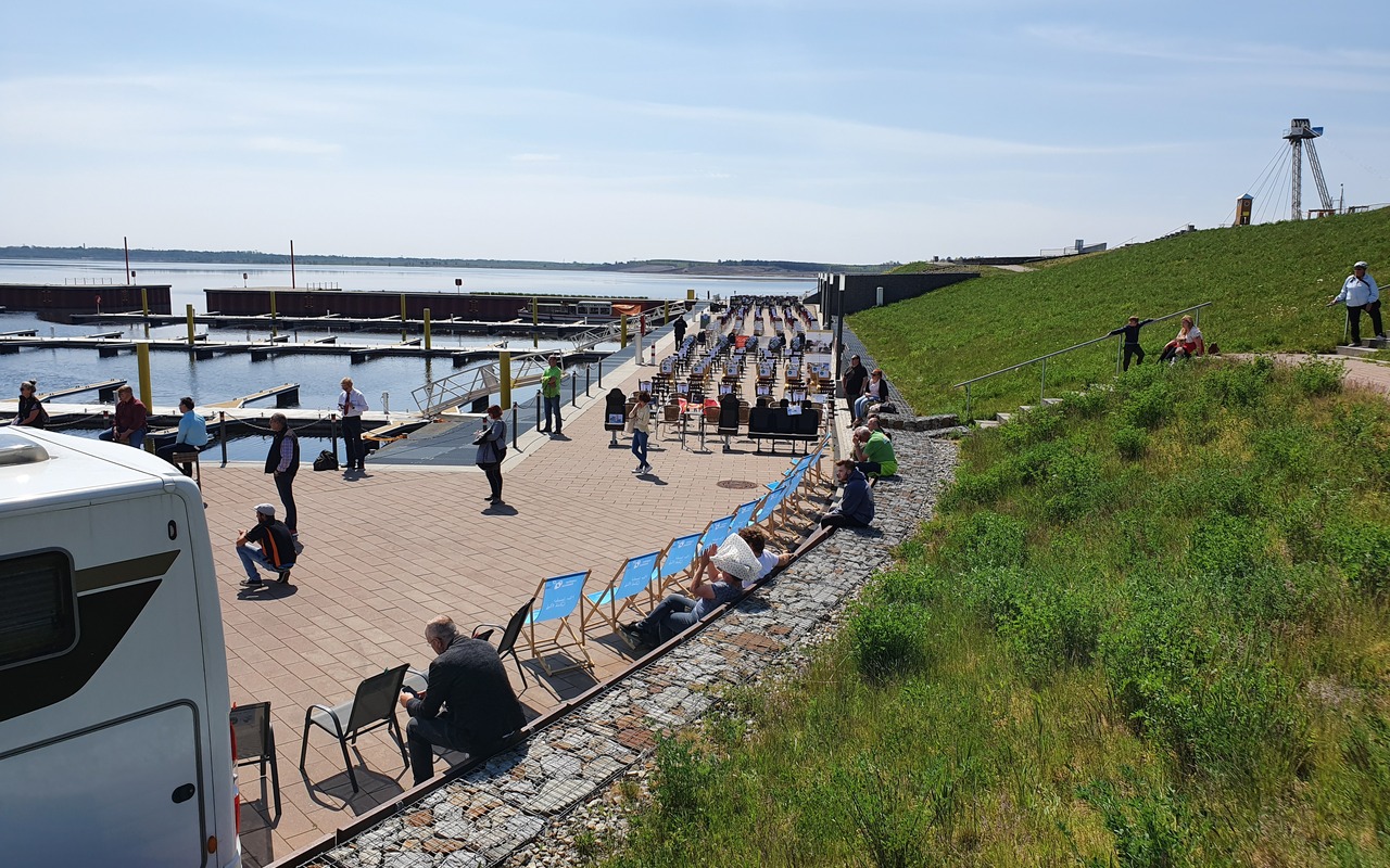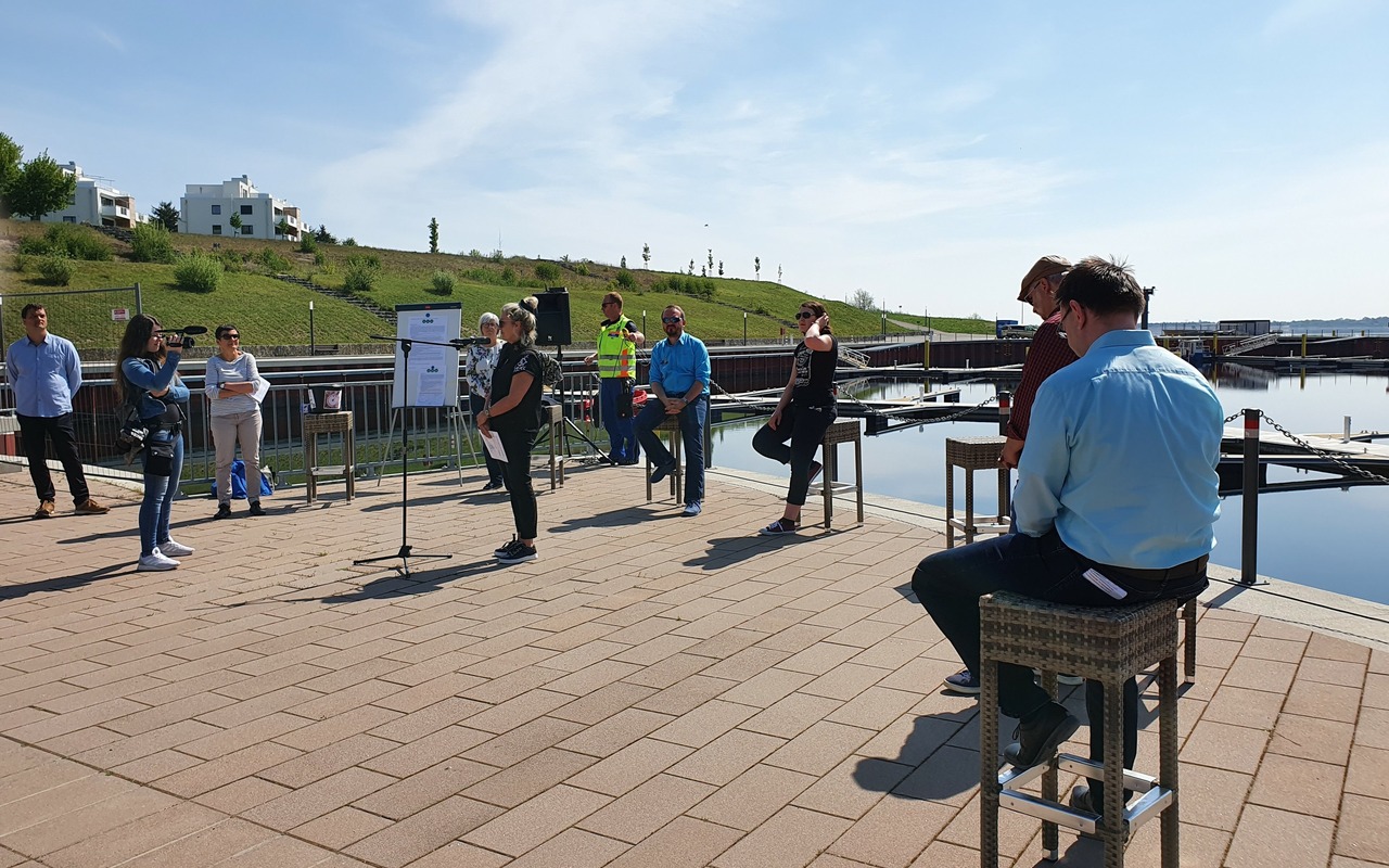 Foto Talkrunde zur Aktion Leere Stühle am Stadthafen Großräschenc) Tourismusverband Lausitzer Seenland e.V. (JPG; 2,24 MB)