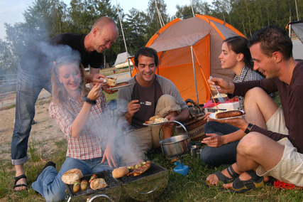 Gästegruppe beim Grillen am ZeltJPG; 5,23 MB