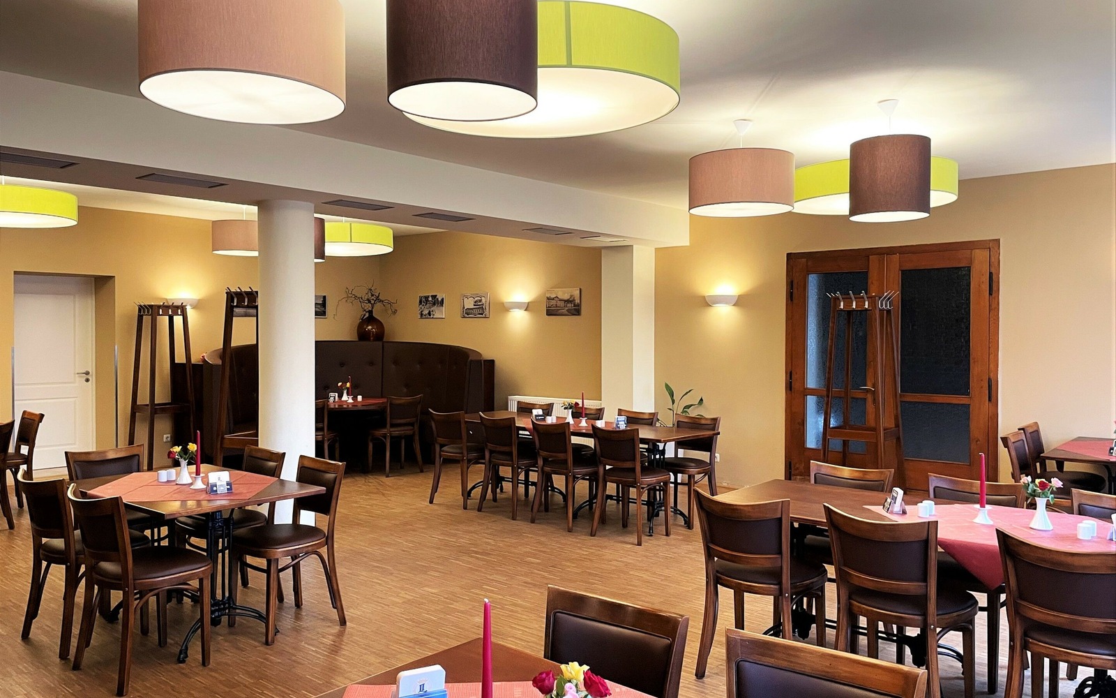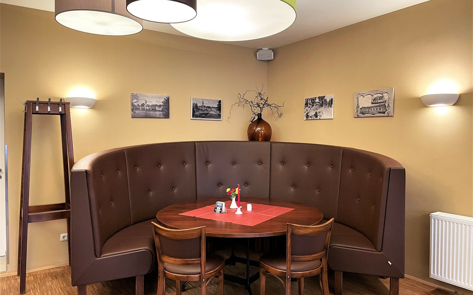 Die heutige Gaststätte und Pension „Zur Friedenseiche“ ist seit Mai 1931 im Familienbesitz und wurde vom Großvater Karl Schenk erworben. Nachdem das Objekt immer wieder erweitert worden war, standen mit der 2. Generation in den 1970er Jahren Abriss und Neubau des Gaststättengebäudes auf dem Plan. Erst Mitte der 1990er Jahre wurde dann die Pension im Dachgeschoss des Gebäudes ausgebaut. Heute bietet die Gaststätte mit dem Saal, dem Kaminzimmer, der Gaststube und dem Biergarten Platz für Familienfeiern, entspannte Mittag- oder Abendessen mit Geschäftspartnern oder Freunden und Vielem mehr. Unser Saal ist beliebt für größere Veranstaltungen wie Hochzeiten, Tanzveranstaltungen, Schulabschlussfeiern und Konzerte. Von Mai bis Ende Oktober hat der Biergarten geöffnet und die Krone der „Friedenseiche“ spendet den Gästen ein schattiges Plätzchen.