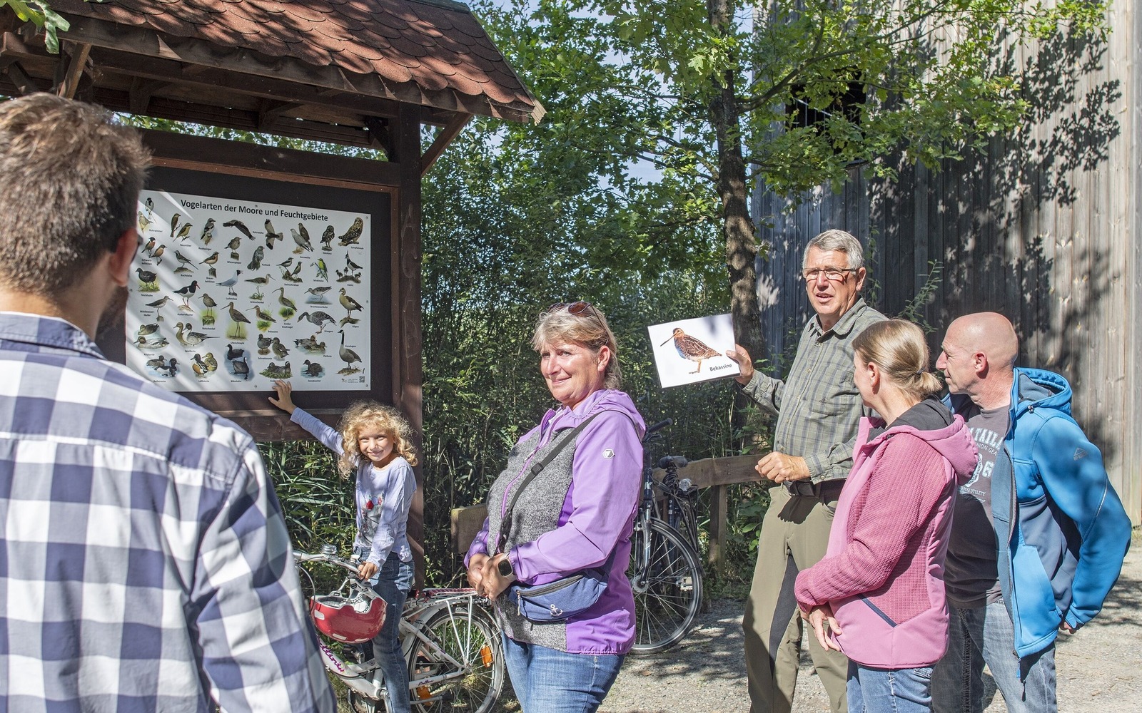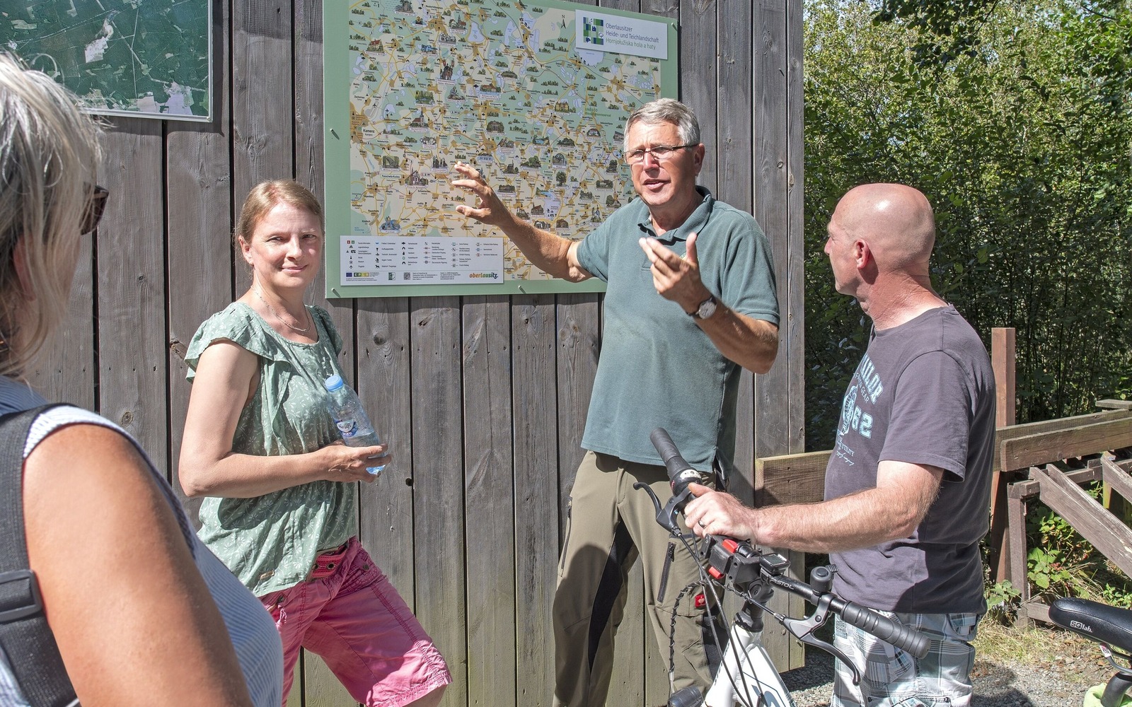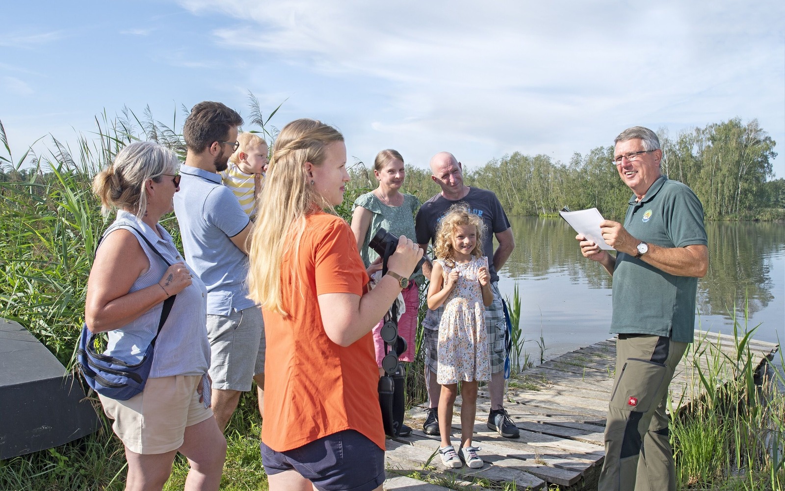Gästeführer mit Gruppe im Teichgebiet, Foto: Nada Quenzel, Lizenz: Tourismusverband Lausitzer Seenland e.V./ Touristinformation Hoyerswerda