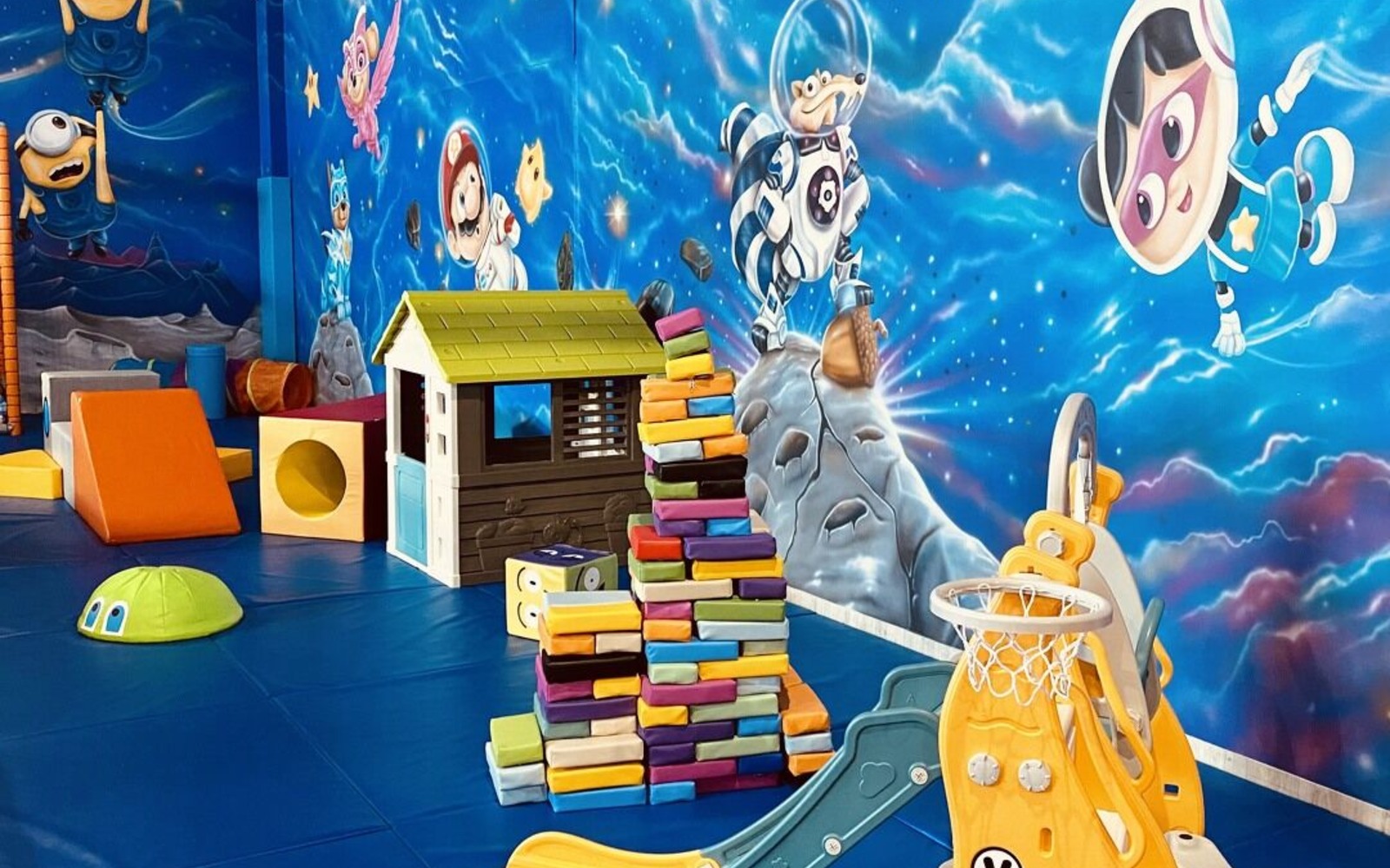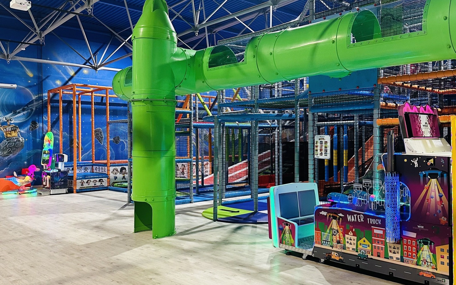 Im Cosmo Planet sind kleine kosmische Entdecker Herzlich Willkommen zum Toben. Auf sie warten viele Attraktionen und eine galaktische Menge voller Spaß. Die Anlage besteht aus drei Geschossen mit kosmischen Schlupfwinkeln, Kratzern und Bergen. Ein ausgezeichneter Ort zum Klettern, Rennen und für kosmische Abenteuer. Labyrinthe, Hindernisbahnen, Trampolinfelder, Rutschen runden das intergalaktische Erlebnis ab.