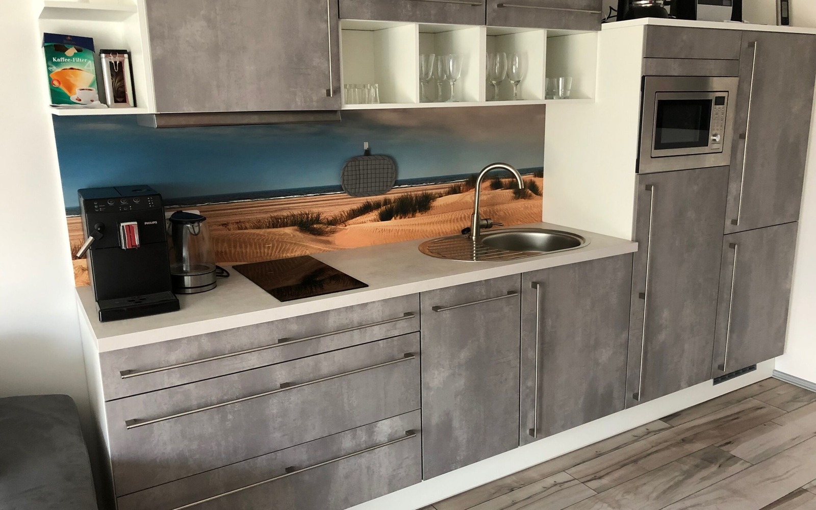 - moderner Essbereich mit gut ausgestatteter Küche und Geschirrspüler, außerdem Kaffeevollautomat