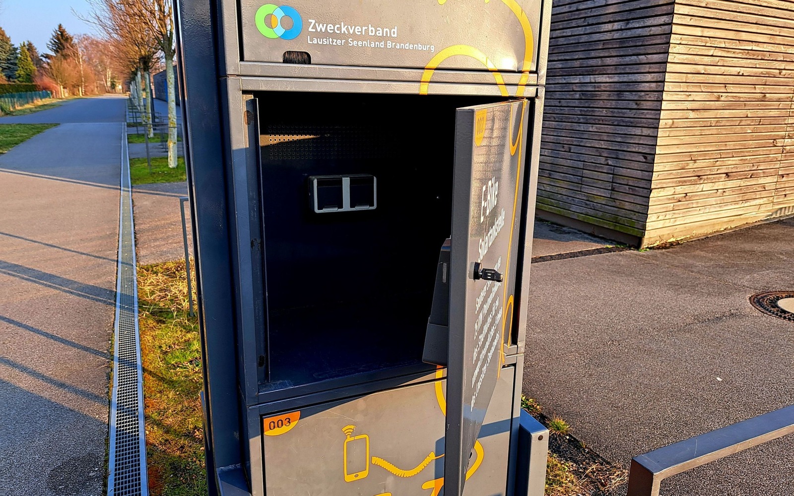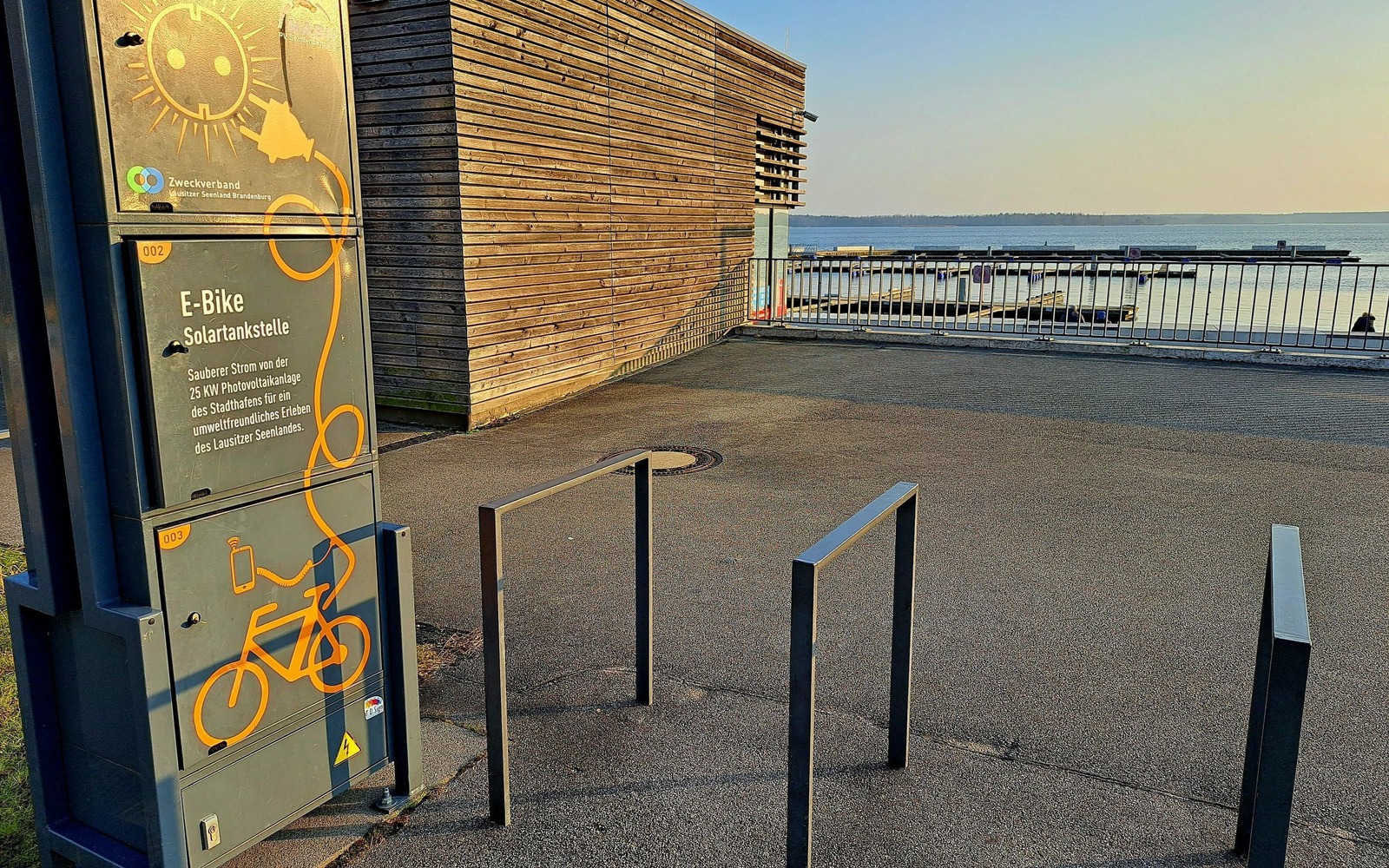 E-Bike-Ladestation im Stadthafen Senftenberg, Foto: N. Dittrich, Lizenz: Tourismusverband Lausitzer Seenland e.V.Außenansicht Ladestation im Stadthafen, Foto: N. Dittrich, Lizenz: Tourismusverband Lausitzer Seenland e.V.Außenansicht Ladestation im Stadthafenv, Foto: N. Dittrich, Lizenz: Tourismusverband Lausitzer Seenland e.V.Schließfach mit Stromanschluss, Foto: N. Dittrich, Lizenz: Tourismusverband Lausitzer Seenland e.V.Schließfach mit Stromanschluss, Foto: N. Dittrich, Lizenz: Tourismusverband Lausitzer Seenland e.V.Schließfach mit Stromanschluss und Radständer, Foto: N. Dittrich, Lizenz: Tourismusverband Lausitzer Seenland e.V.Blick auf den Stadthafen von der Solartankstelle, Foto: N. Dittrich, Lizenz: Tourismusverband Lausitzer Seenland e.V.Außenansicht, Foto: N. Dittrich, Lizenz: Tourismusverband Lausitzer Seenland e.V.