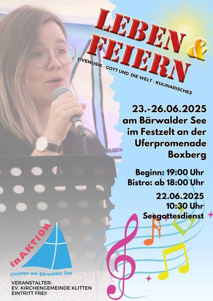 Am Bärwalder See - im Festzelt an der Uferpromenade Boxberg, mit guter Live-Musik, tollem Essen und Trinken, gemütlicher Zeltatmosphäre, Berichten und Impulsen zu Gott und der Welt.