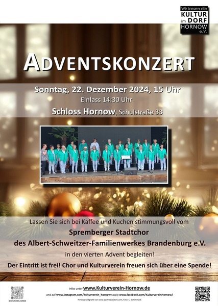 Traditionelles ADVENTSKONZERT des Spremberger Stadtchor des Albert-Schweitzer-Familienwerkes Brandenburg e.V. im Schloss Hornow bei Kaffee und Kuchen.