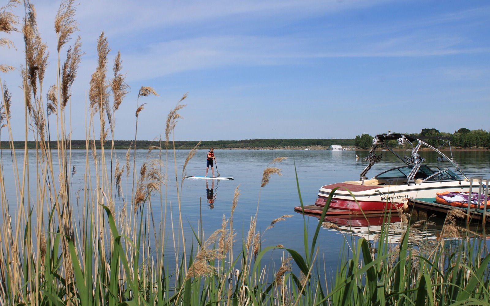 Mit dem Stand-Up-Paddle ruhig über den See paddeln, Foto: Eva Lau, Lizenz: Tourismusverband Lausitzer Seenland e.V.