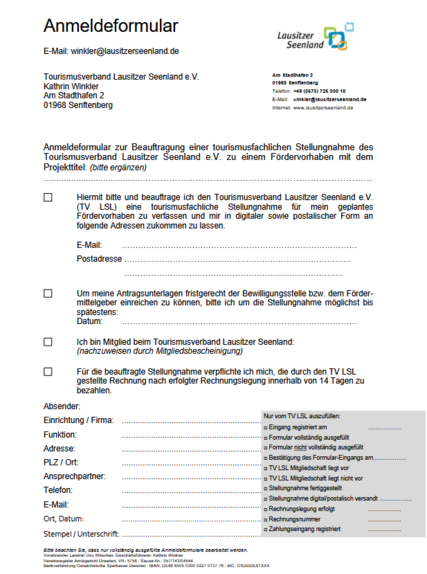 Sie möchten Fördermittel anfragen und benötigen hier für eine tourismusfachliche Stellungnahme. Dann wenden Sie sich gern an uns. Für unsere Mitglieder erstellen wir dies kostenfrei und für Nicht-Mitglieder für eine entsprechende Gebühr. Gern stehen wir für ein persönliches Gespräch und für Ihre Fragen zur Verfügung. Nehmen Sie am Besten gleich Kontakt mit uns auf.
