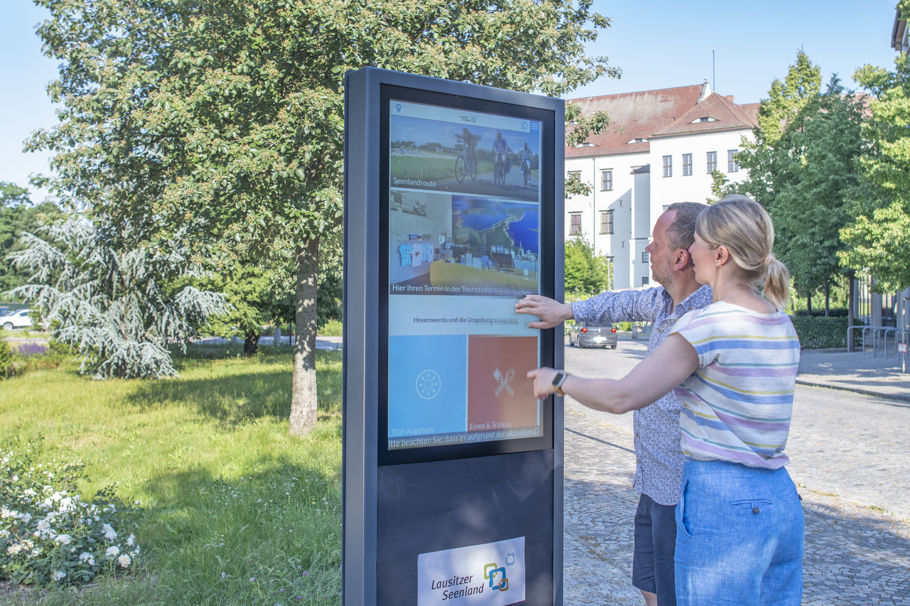 Die digitale Gästeinformation MeinLausitzerSeenland können Sie mittlerweile an vielen digitale Touchpoints in Form von großen Stelen oder Bildschirmen im Innen- als auch Außenbereich finden. Die Installation der Systeme an mehreren Orten in den Landkreisen Oberspreewald-Lausitz und Spree-Neiße wurde gefördert. Neue Orte mit MeinLausitzerSeenland sind z.B. am Stadthafen Senftenberg, in der Gartenstadt Marga, an den Bahnhöfen in Senftenberg und Forst (L.), in Spremberg oder im Ostdeutschen Rosengarten Forst (L.) Eine Infostele ist bereits seit 2020 in Hoyerswerda vor der Kulturfabrik im Einsatz.