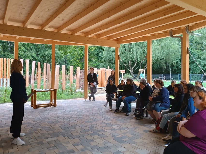 Im weiteren Verlauf des Tages konnten die Teilnehmenden an einem der neu angelegten inklusiven Spielplätze, dem „Piratenschiff“, praktische Eindrücke sammeln und erfuhren mehr über die Umsetzung barrierefreier Wege, taktiler Leitsysteme und Sanitäranlagen. Besonders die Möglichkeit, inklusive Spiel- und Bewegungsangebote kennenzulernen, wurde von den angehenden Heilerziehungspflegerinnen und -pflegern als wertvoll empfunden.