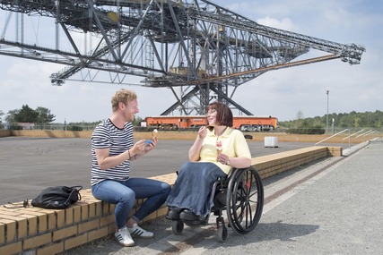 Foto Rollstuhlfahrerin und ihr Begleiter am Besucherbergwerk F60©Tourismusverband Lausitzer Seenland, Nada Quenzel (JPG; 2,38 MB)