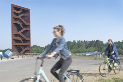Radfahrer am Aussichtsturm Rostiger Nagel