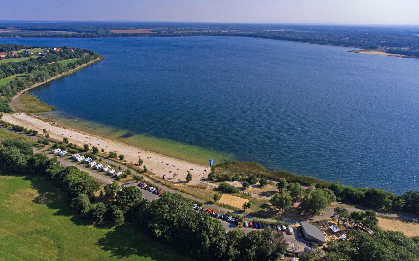 Aerial view of caravan paradise, beach and beach bar, Foto: Jörg Berndt, Lizenz: Camping- und Caravanparadies Dreiweiberner See