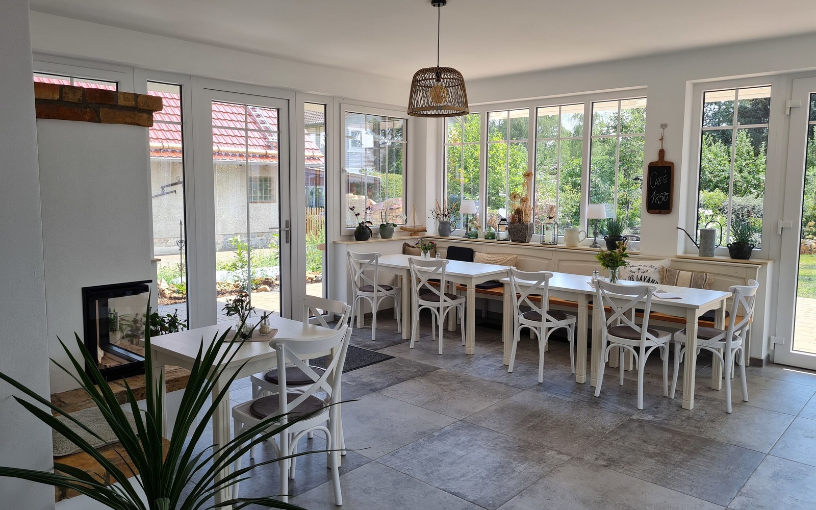 In addition to the farm café, there is also a separate holiday home on the farm as well as a completely renovated farmhouse from 1850 with four high-quality and spacious flats. During the renovation, great importance was attached to preserving old parts of the walls of the original farmhouse. These were combined with modern building materials and homely accessories.